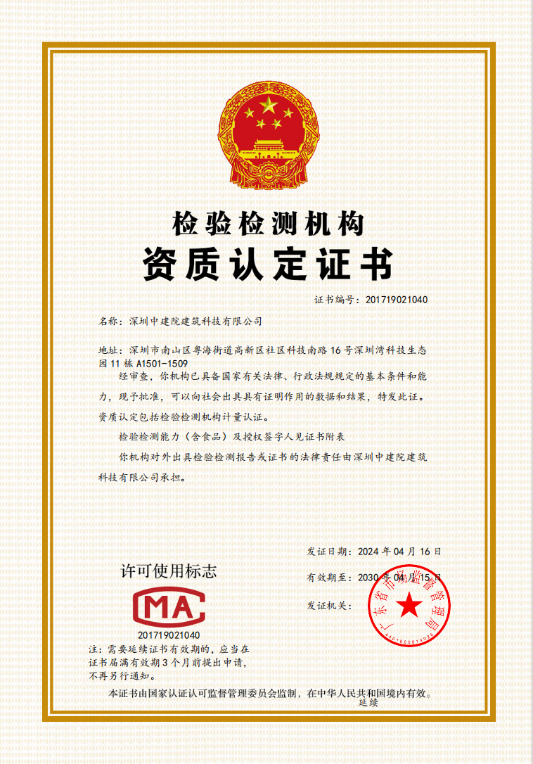 深圳中建院綜合檢測實(shí)驗(yàn)室建設(shè)工作進(jìn)展順利,建筑節(jié)能、綠色建筑新增項(xiàng)目已取得CNAS 、CMA資質(zhì)擴(kuò)項(xiàng)證書,幕墻實(shí)驗(yàn)室已完成設(shè)備主體安裝工作,繼續(xù)進(jìn)行資質(zhì)能力建設(shè)及部分新增項(xiàng)目擴(kuò)項(xiàng)審核工作。