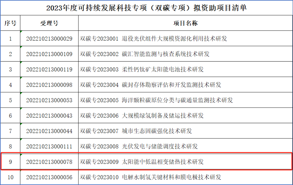 近日,深圳中建院建筑科技有限公司(以下簡稱“深圳中建院”)牽頭,聯合天津大學佐治亞理工深圳學院、深圳市愛能森科技有限公司申報的深圳市科技創新委員會2023年可持續發展科技專項(雙碳專項)項目——《太陽能中低溫相變儲熱技術研發》獲批立項。