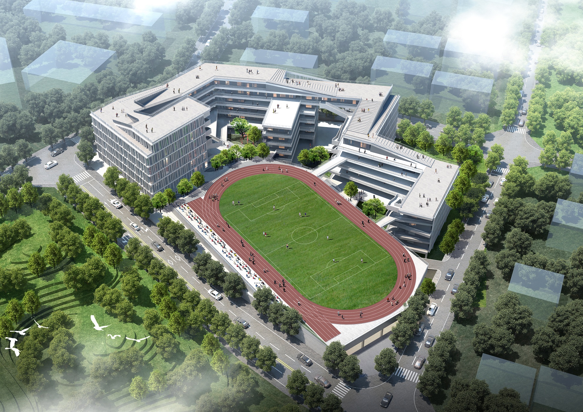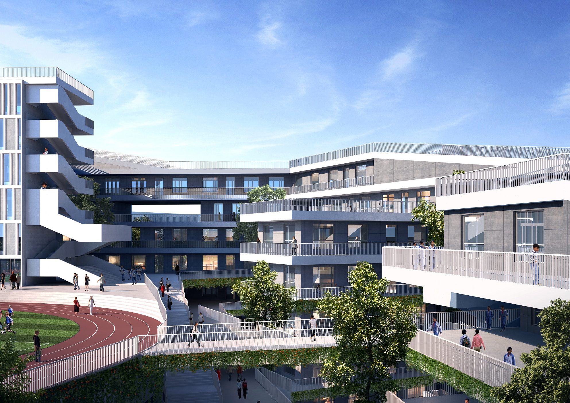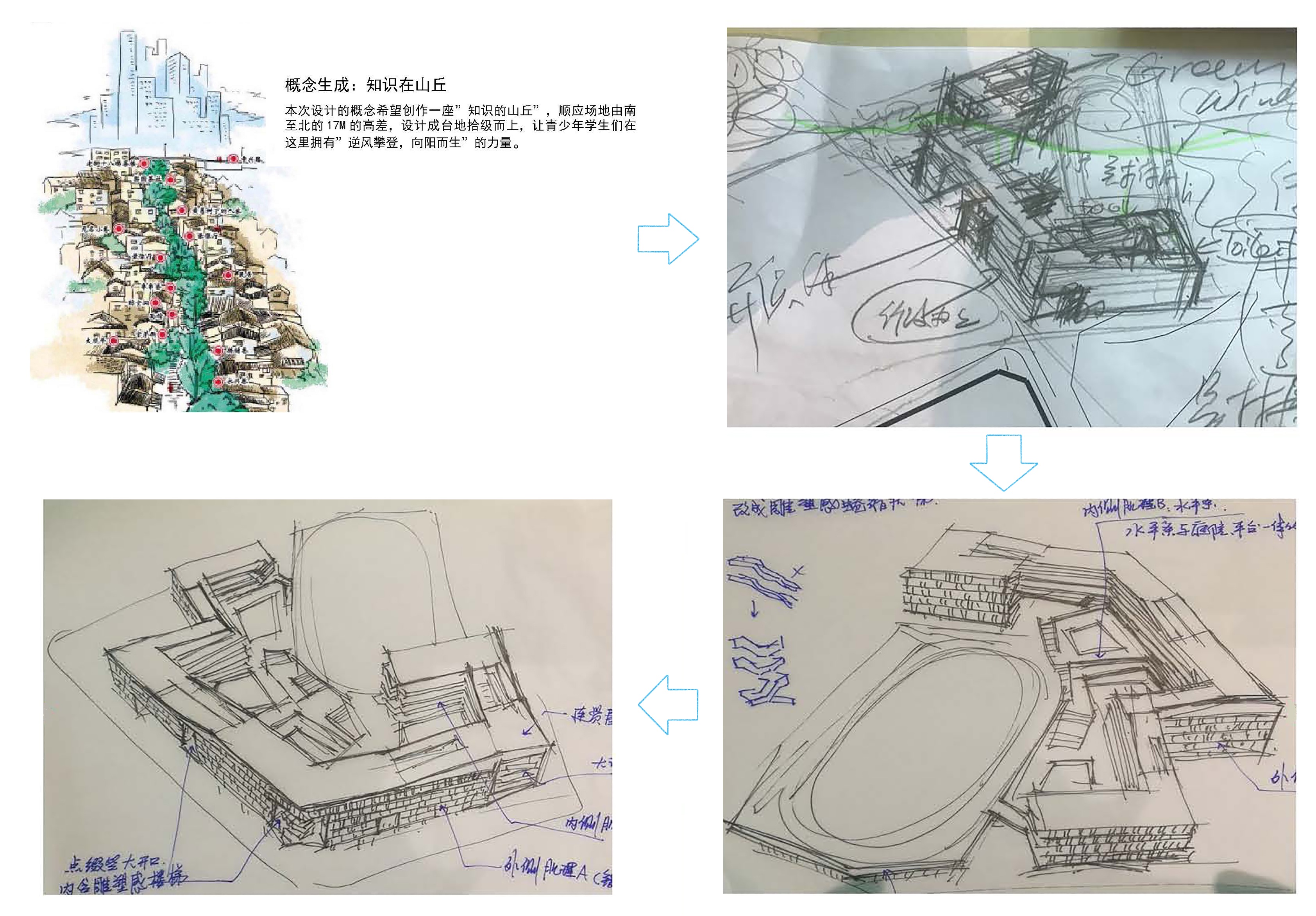 方能在學(xué)業(yè)上有所小成。我司深圳龍勝學(xué)校建筑方案以知識的山丘設(shè)計(jì)概念,將求學(xué)的攀登之路與項(xiàng)目的地形地貌相結(jié)合,為學(xué)校創(chuàng)作了一個(gè)寓理于景的立體式校園設(shè)計(jì)方案,以期展現(xiàn)莘莘學(xué)子勤勉求學(xué)的畫卷。