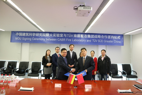 11月18日,TÜV南德意志集團(以下簡稱“TÜV SÜD”)為我院防火實驗室頒發了外部電梯層門防火測試認可合作實驗室授牌,并簽署了戰略合作協議。